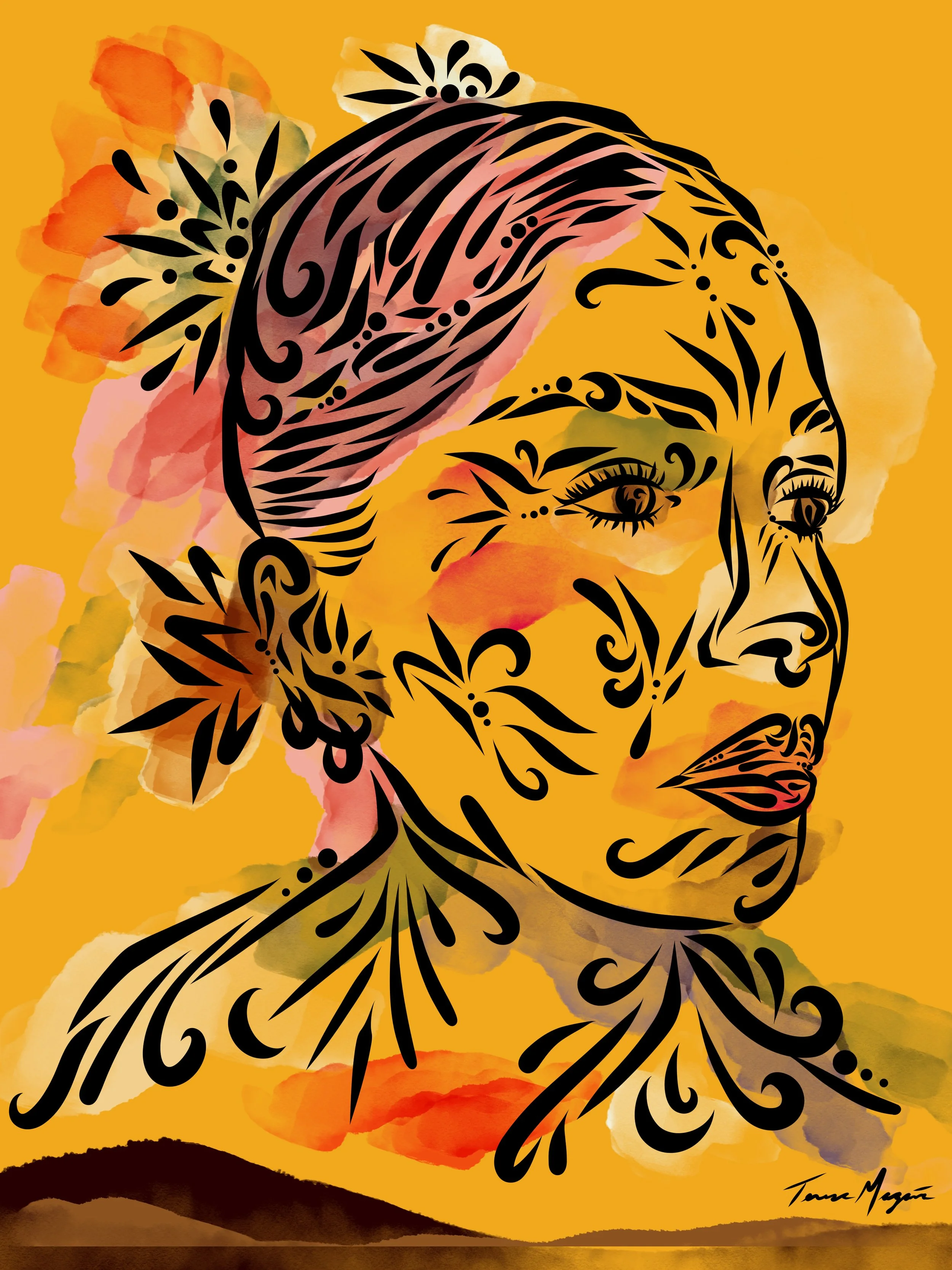 Teresa’s art centers on the strength and fluidity of feminine energy. Through her pieces, she explores the powerful essence that women carry, as well as the beauty found in life’s internal rhythms. Spirituality and universal connection are key themes in her work, bringing depth and purpose to each brushstroke and carve. Her background in music, where she played the clarinet and cello, adds a melodic quality to her visual art, creating a unique harmony between sound and image.